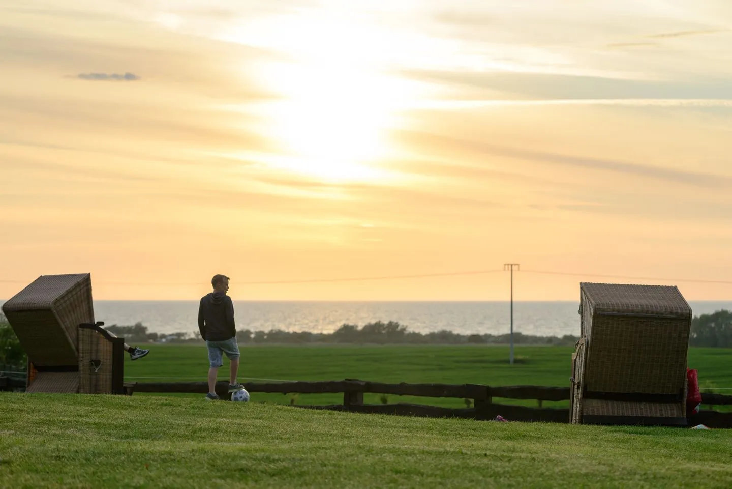 Unsere 2-Zimmer-Ferienwohnung im Erdgeschoss ist seeseitig gelegen und erstreckt sich über großzügige 41 Quadratmeter. Hier erwartet Sie nicht nur eine behagliche Atmosphäre, sondern auch ein atemberaubender Blick auf die Ostsee und das Naturschutzgebiet Riedensee. Der Kägsdorfer Strand ist bequem zu Fuß oder mit dem Fahrrad in wenigen Minuten erreichbar.