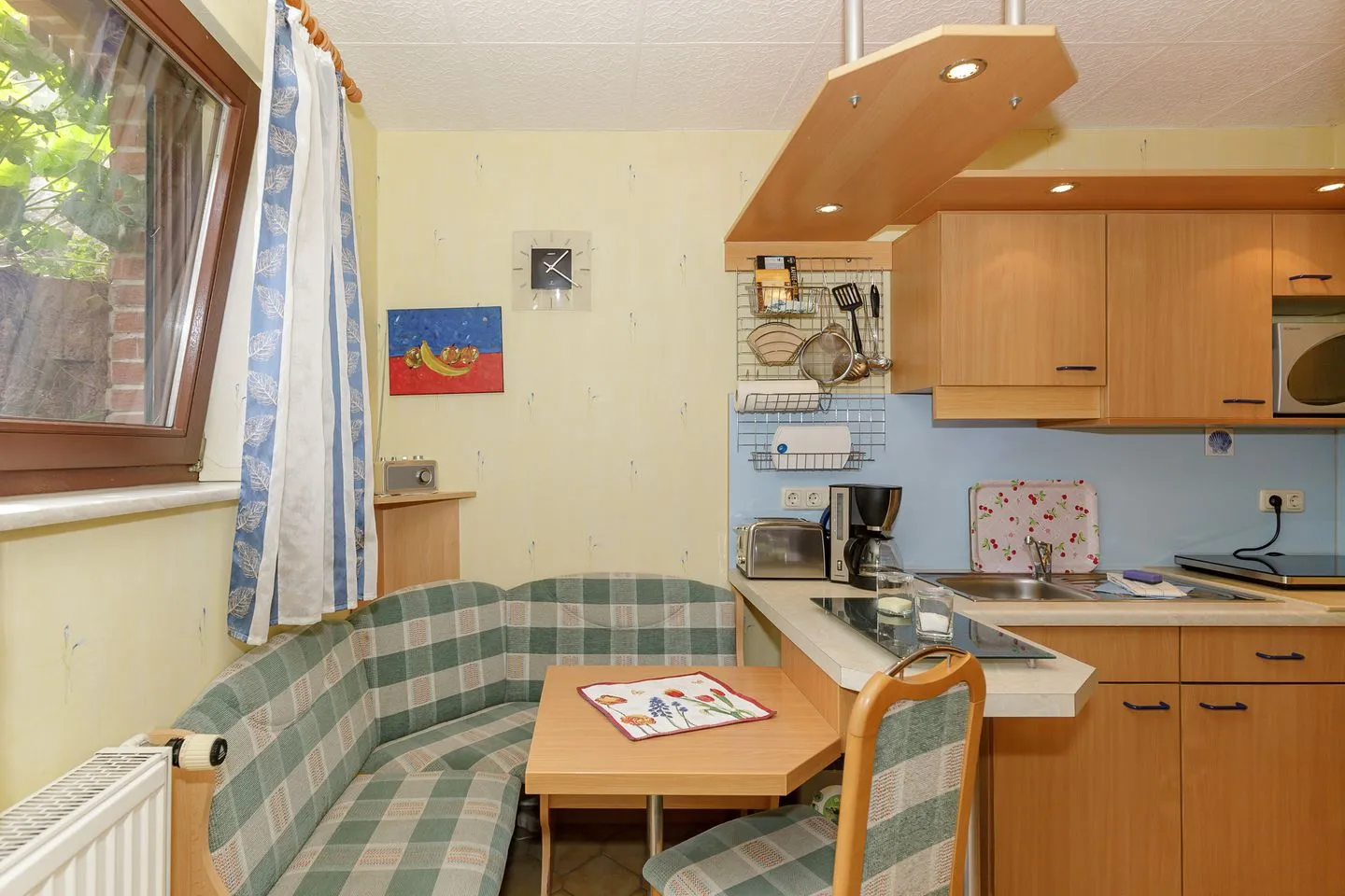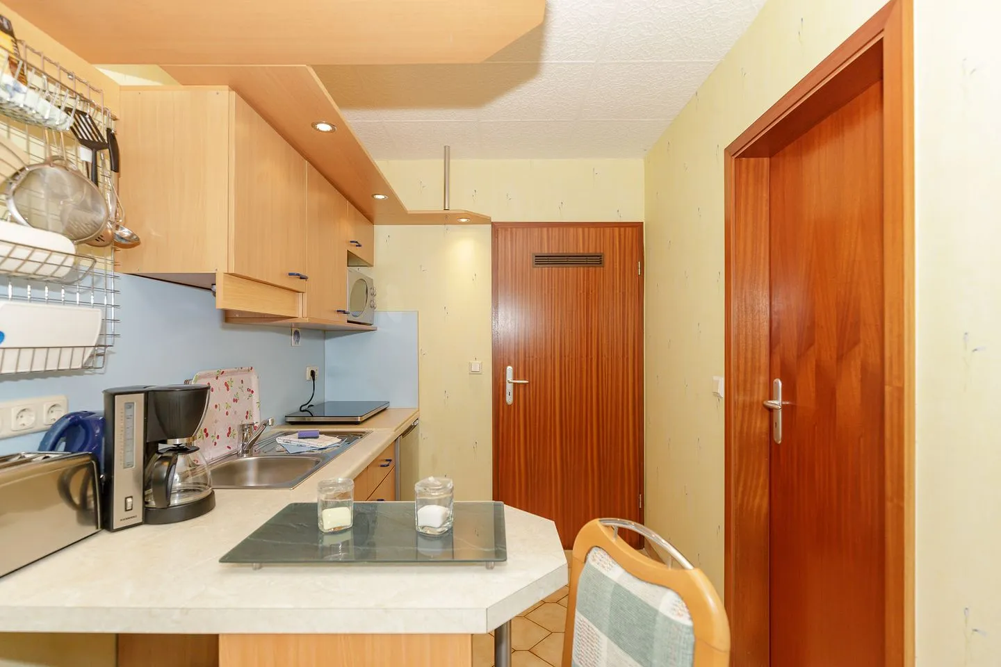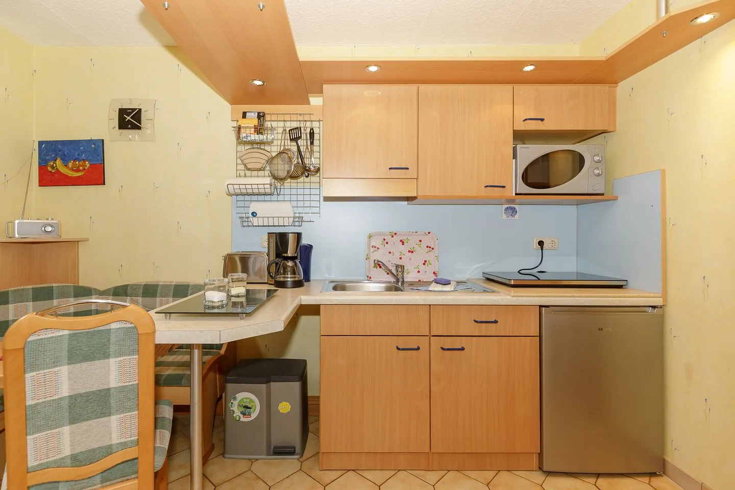 Das helle Appartement ist mit viel Liebe zum Detail gestaltet. Der Wohn- und Schlafbereich lädt mit seiner gemütlichen Atmosphäre zum Abschalten ein, während die voll ausgestattete Küche mit Sitzecke zum Kochen und Genießen einlädt. Das modern geflieste Badezimmer überzeugt durch stilvolle Schlichtheit und Funktionalität.