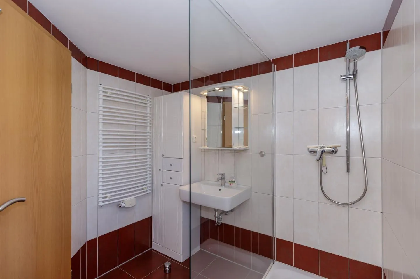 Das Duschbad ist mit allen Annehmlichkeiten versehen. Besonderen Luxus bietet die großzügige Dusche.