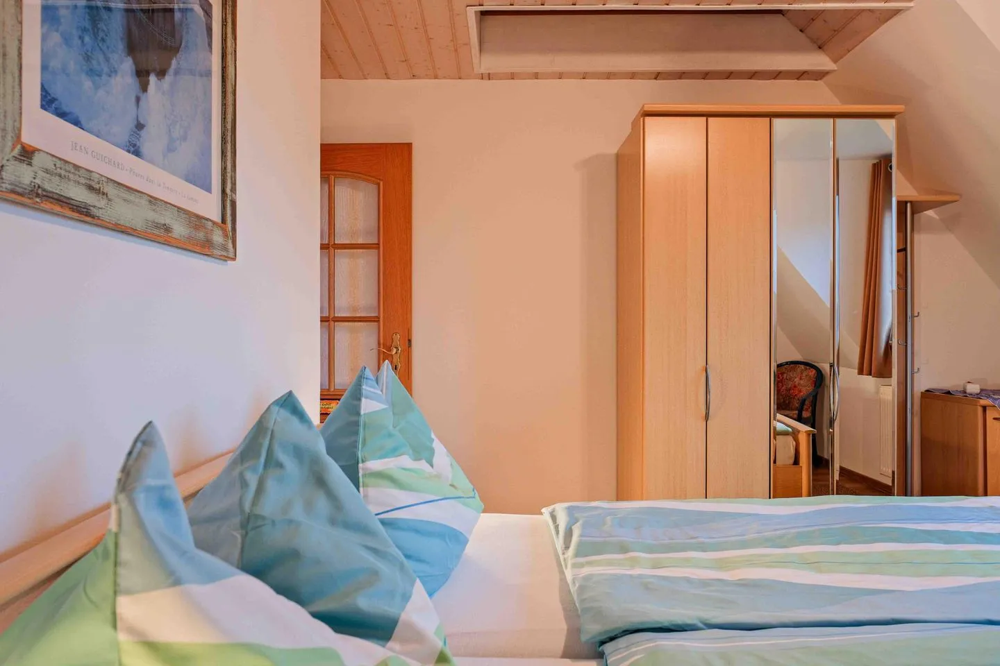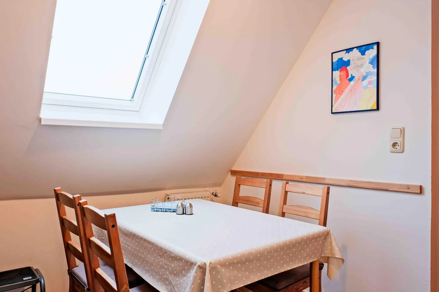 Die Ferienwohnung bietet zwei helle, gut geschnittene Zimmer und ist für bis zu 4 Personen ausgelegt. Die Raumaufteilung eignet sich hervorragend für Familien, Paare oder ruhesuchende Senioren. Große Fenster, viel Tageslicht und der Blick ins Grüne sorgen für ein angenehmes Wohngefühl und echte Erholung vom Alltag.