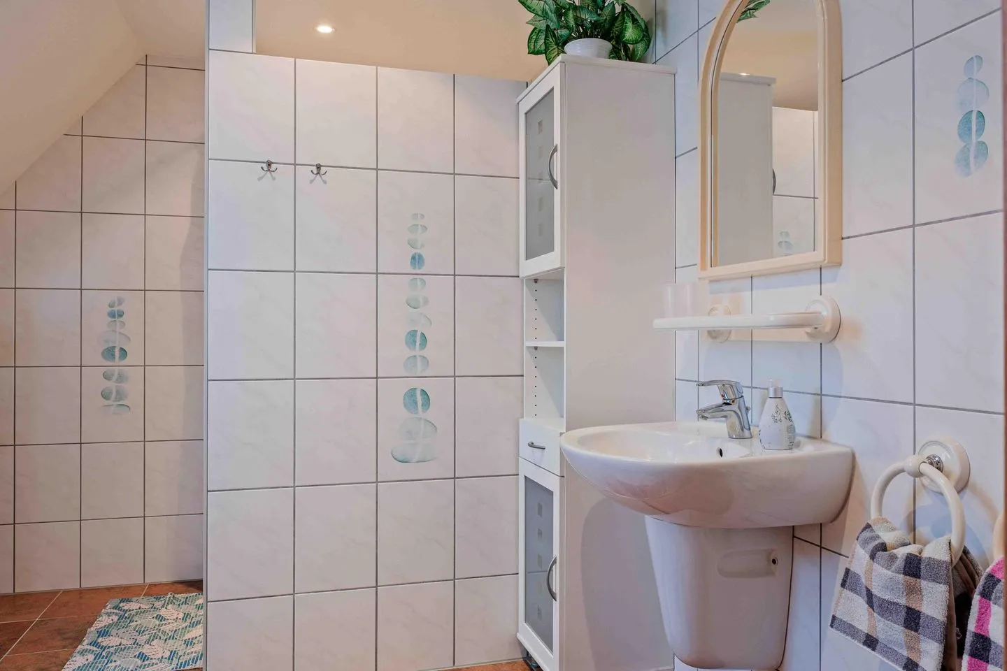 Das große Badezimmer überzeugt mit Dusche, WC und Waschtisch sowie viel Platz und Tageslicht – ideal auch für längere Aufenthalte.