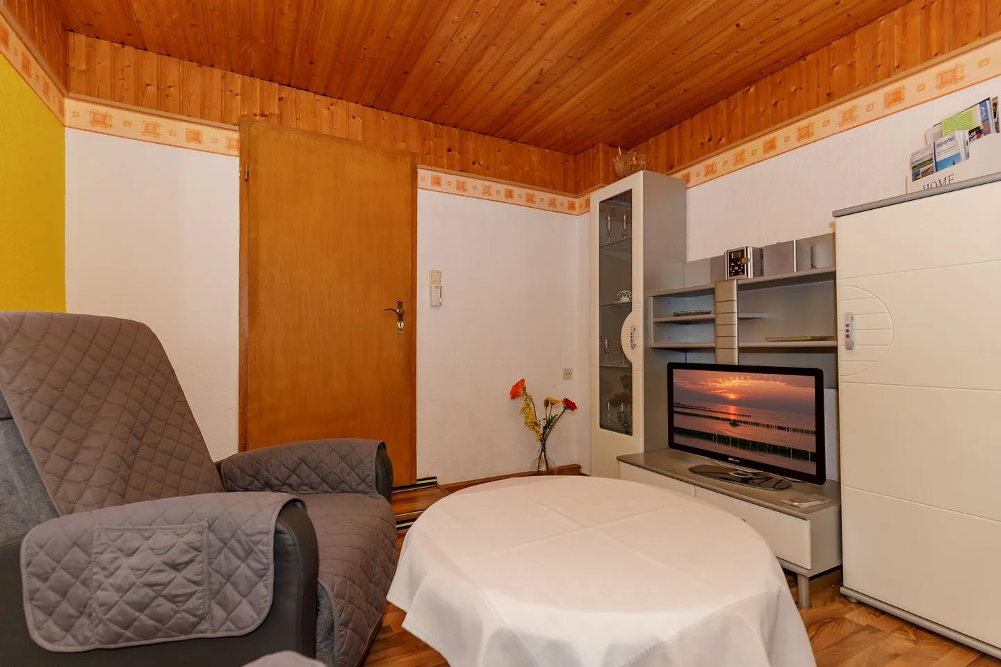 Die Ferienwohnung verfügt über ein großzügiges separates Schlafzimmer, ein gemütliches Wohnzimmer, eine voll ausgestattete Küche und ein helles, freundliches Bad mit Dusche und WC. Ideal für Paare, die das Meer lieben und Wert auf eine gepflegte, ruhige Unterkunft mit Geschichte legen.