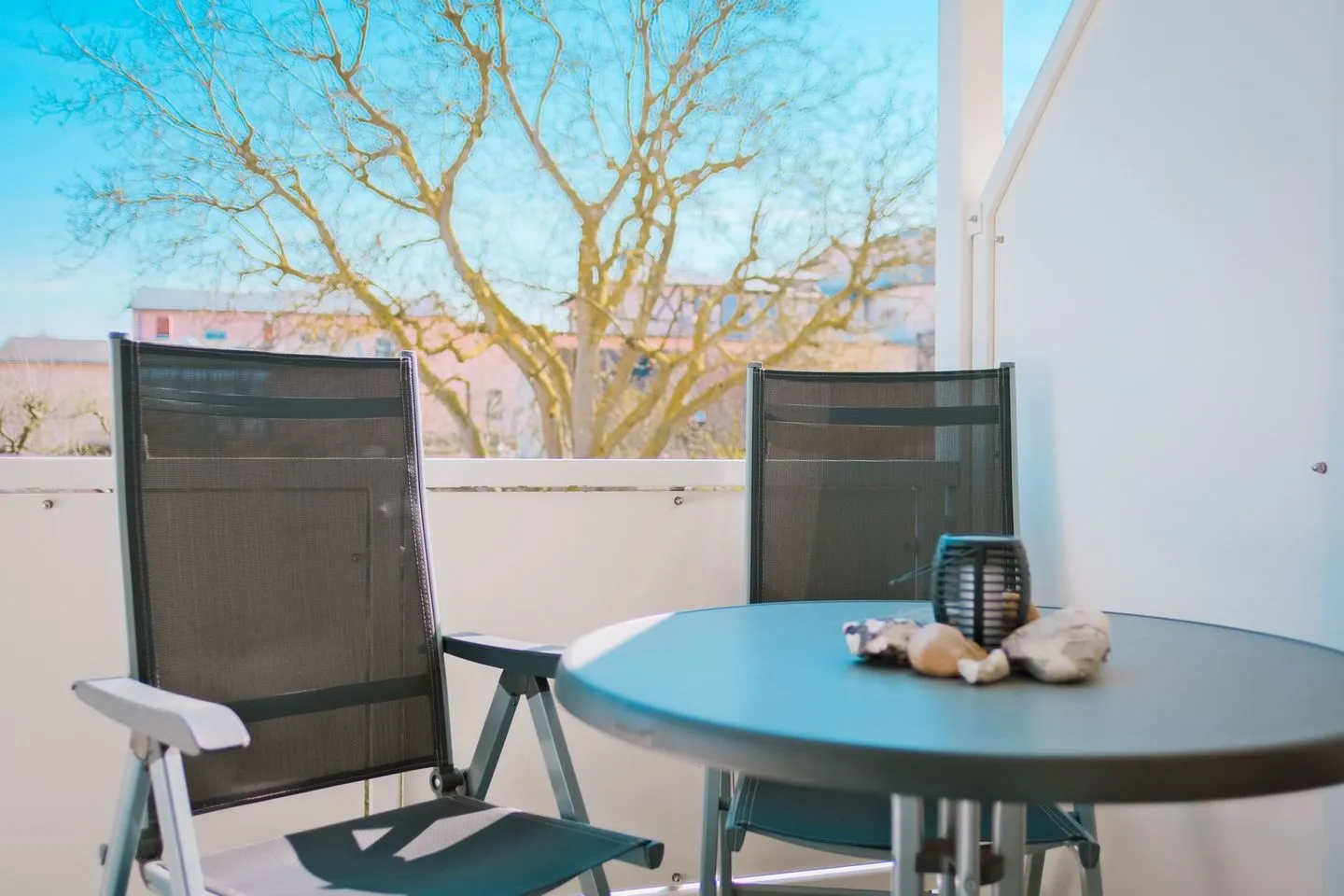 Ein echtes Highlight ist der sonnige Südbalkon mit Blick ins Grüne. Hier können Sie die frische Ostseeluft genießen, den Tag bei einem Glas Wein ausklingen lassen und die Ruhe der Umgebung auf sich wirken lassen.