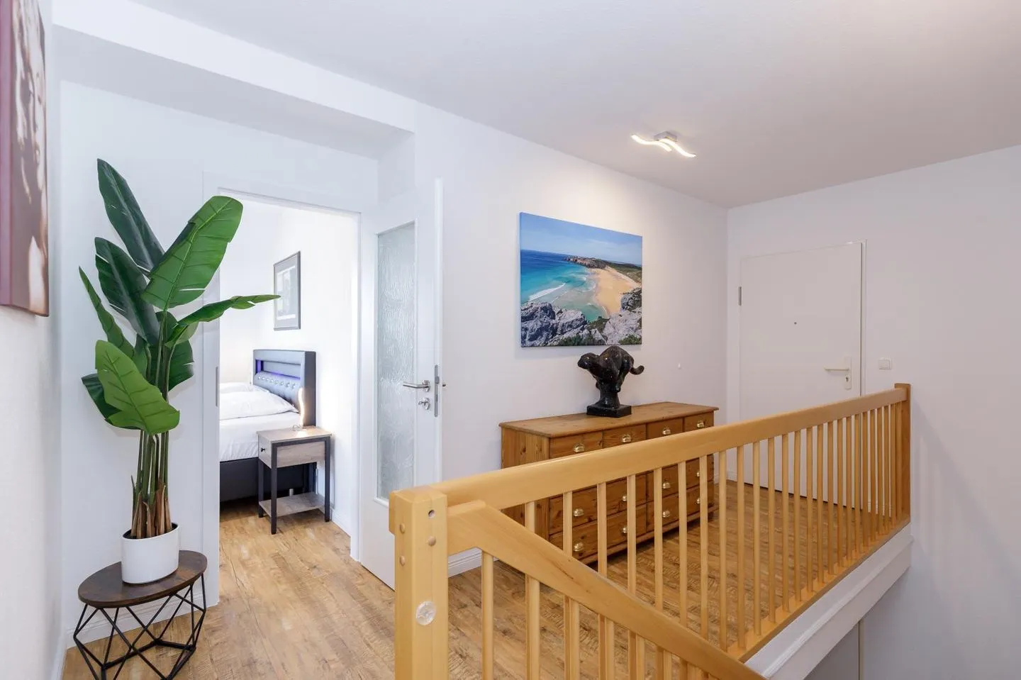 Im oberen Bereich finden Sie himmlische Ruhe: Ein großes Schlafzimmer mit Doppelbett, ein weiteres Zimmer mit zwei Einzelbetten, ein geräumiges Bad sowie ein separates Ankleidezimmer machen diese Etage zur ganz privaten Rückzugsoase.