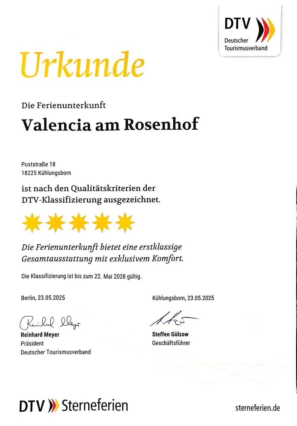 5-Sterne-DTV-Zertifizierung für herausragende Qualität
