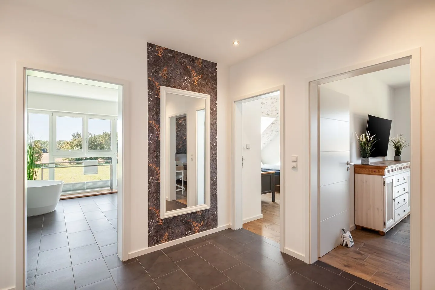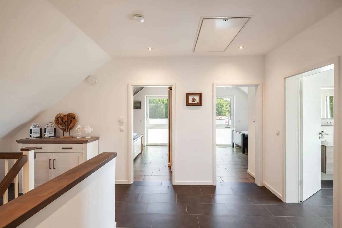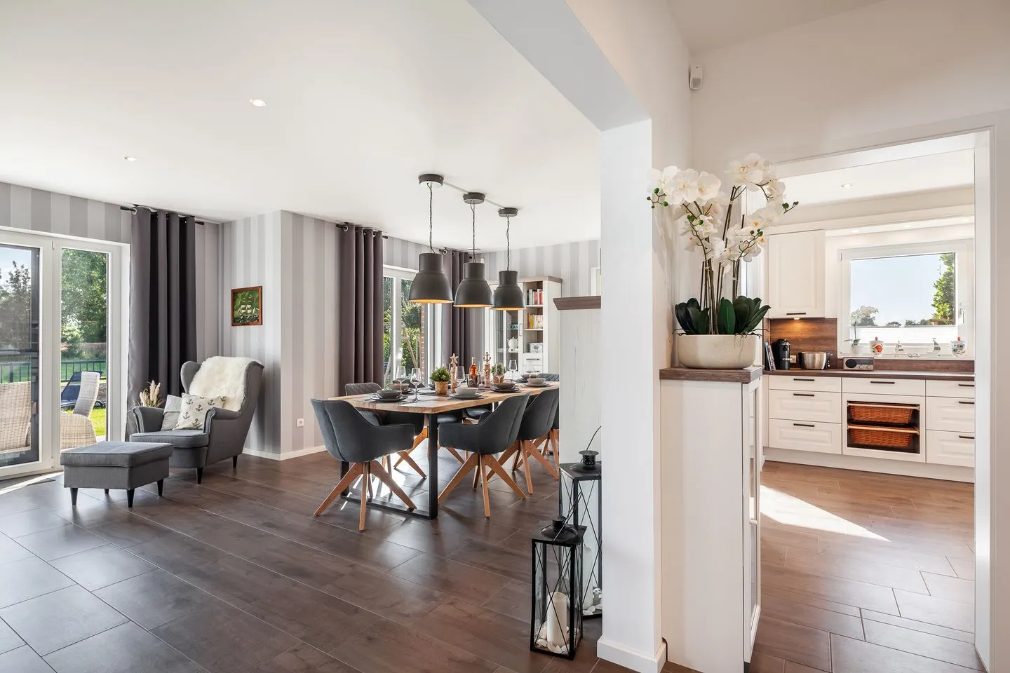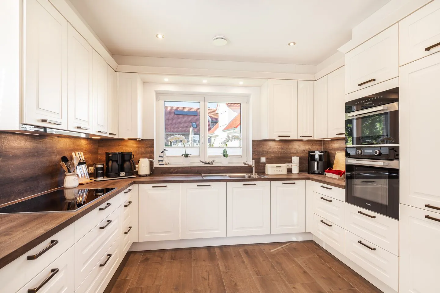 Das Haus beeindruckt nicht nur durch sein stilvolles Design, sondern auch durch seine konsequente Nachhaltigkeit. CO₂-neutral gebaut, erzeugt es mehr Energie, als es verbraucht – ein Plus für Umwelt und Gäste gleichermaßen. Für Entspannung sorgen die hauseigene Sauna, ein Whirlpool sowie ein weitläufiger Wohn-Essbereich mit Kamin und Landhausküche. Im Garten erwartet Sie künftig eine Outdoorküche – perfekt für gesellige Kochabende unter freiem Himmel.
