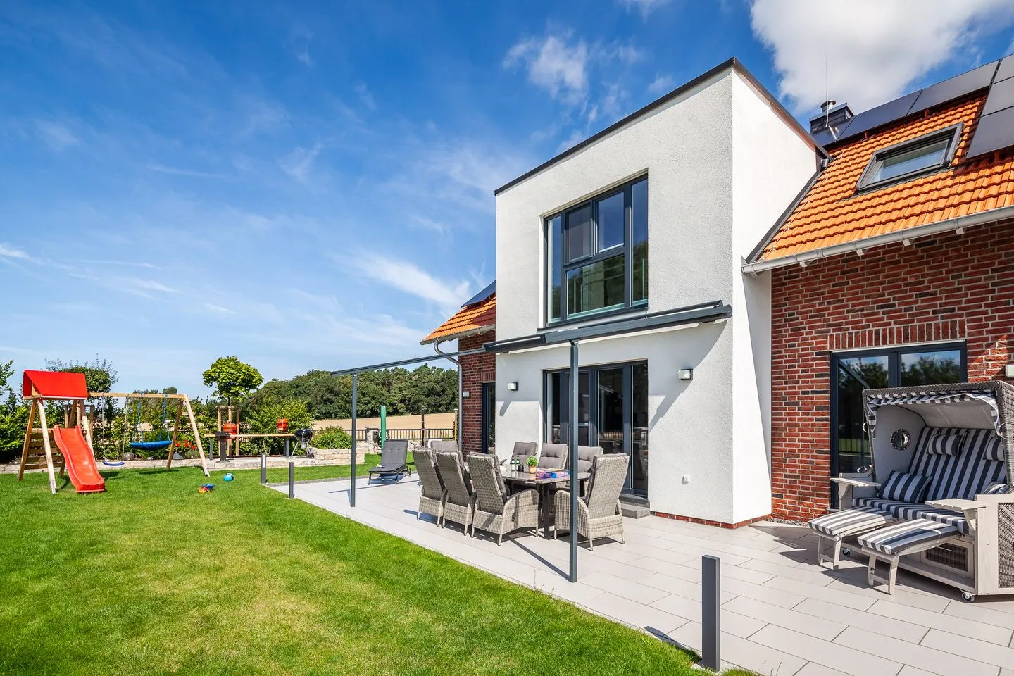 Willkommen im „Backstein Huus Nr. 15“ – einem außergewöhnlichen Ferienhaus in Wischuer, nur 5 km von Rerik und 7 km von Kühlungsborn entfernt. Auf einem großzügigen Grundstück von 660 m² entstand im Juni 2023 ein architektonisches Schmuckstück, das traditionelle Backsteinoptik mit modernem Wohnkomfort vereint. Mit rund 170 m² Wohnfläche und hochwertiger Ausstattung auf 5-Sterne-Niveau erleben Sie hier luxuriösen Ostseeurlaub in seiner schönsten Form.
