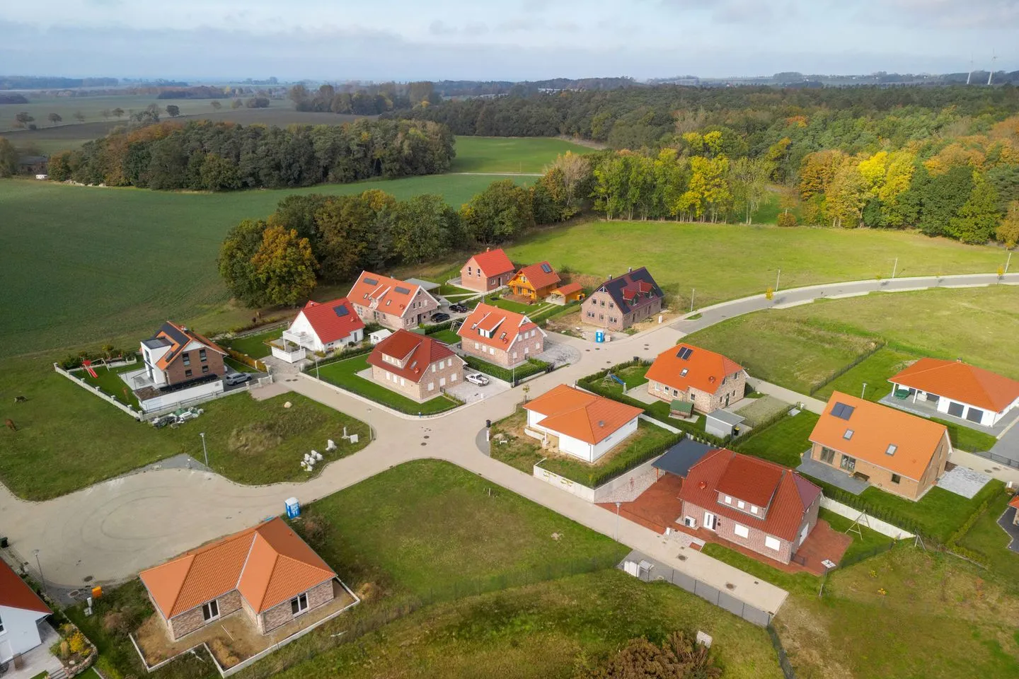 Rande des Ortes, umgeben von sanften Hügeln und saftigen Wiesen. Nur eine kurze