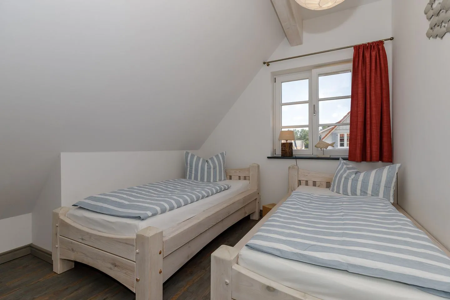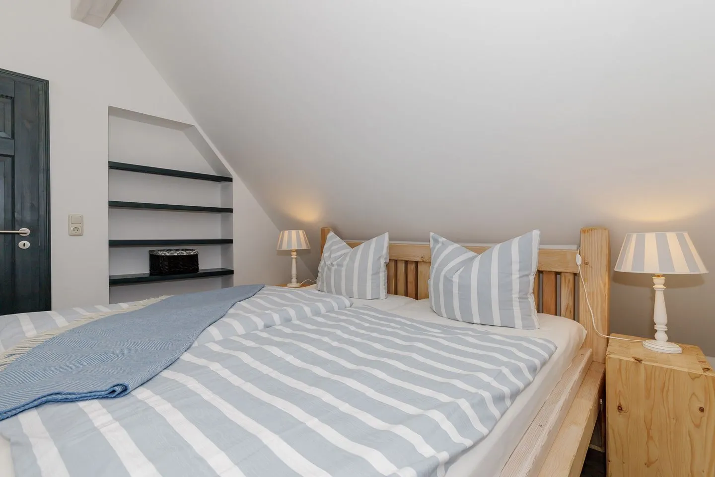 Insgesamt fünf geschmackvoll eingerichtete Schlafzimmer sorgen für erholsame Nächte. Die Einrichtung kombiniert natürliche Materialien, helle Farben und maritime Akzente – für das Gefühl, direkt an der Ostsee zu wohnen. Zwei moderne Badezimmer mit Dusche und Fußbodenheizung bieten zusätzlichen Komfort.