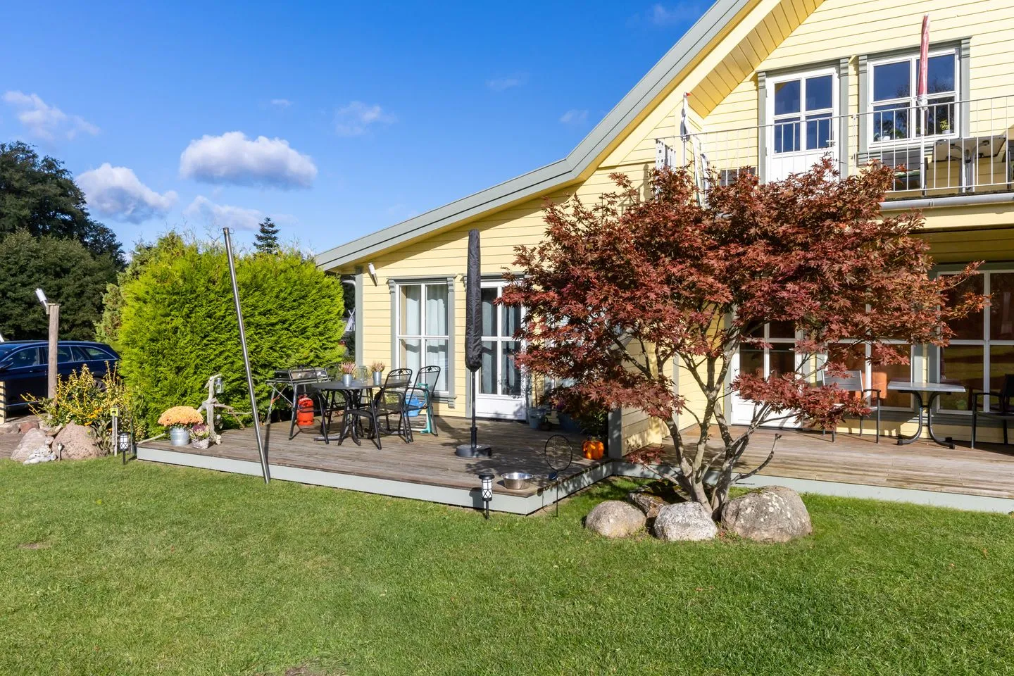 Genießen Sie auf der privaten Südterrasse oder dem Balkon mit Ostseeblick sonnige Stunden und frische Seeluft. Im weitläufigen Garten erwarten Sie Grillmöglichkeiten, eine Fasssauna und eine heiße Badetonne – ideale Orte zum Abschalten und Entspannen.
